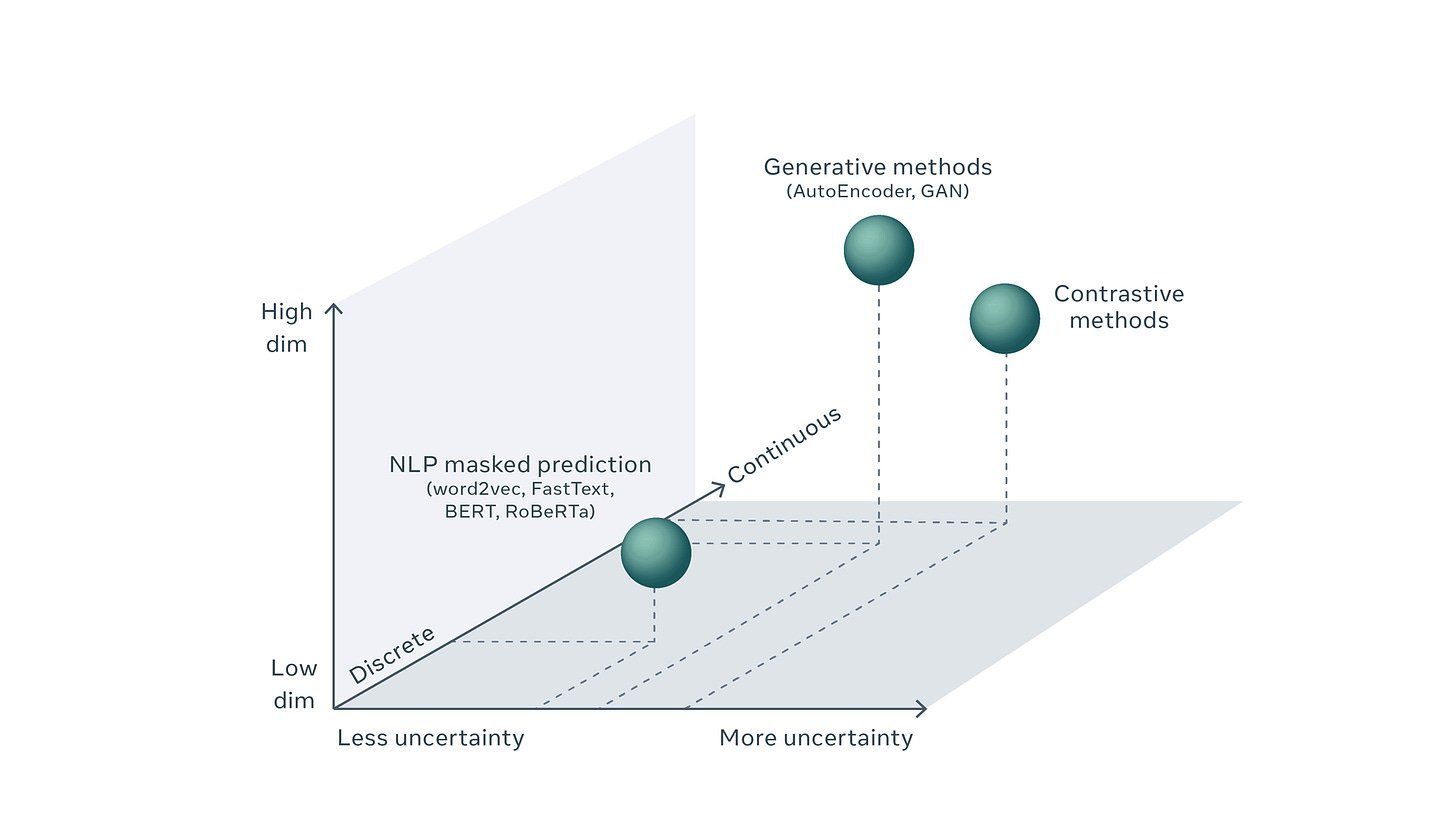 Take a look at this diagram from a recent paper by the Facebook AI team, Self-supervised learning: The dark matter of intelligence.